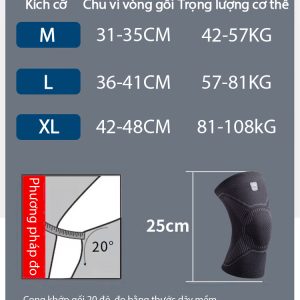 – Size M: Chu vi vòng gối 31-35cm, trọng lượng cơ thể 42-57kg